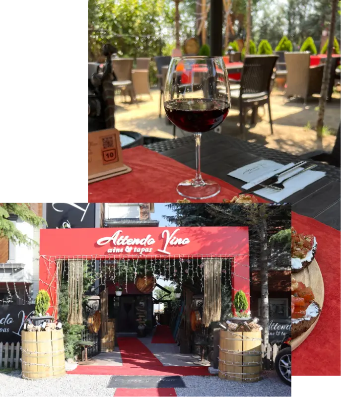 Ankara’nın sessiz ve zarif semti İncek’te yer alan Attendo Vino, doğanın dinginliğiyle şarap kültürünü bir araya getiriyor. Burada her detay, iyi bir şarabın hakkını verecek şekilde tasarlandı loş ışıklar, seçkin müzikler ve bağlardan sofraya uzanan lezzetler…
