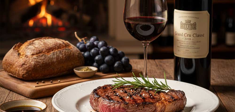 Dana bonfile, antrikot, kuzu gibi güçlü lezzetler; gövdeli, tanenli kırmızı şaraplarla birleştiğinde daha derin bir karakter kazanır. Cabernet Sauvignon, Merlot, Syrah bu eşleşmenin yıldızlarıdır.